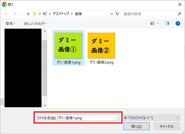 1つのファイルを選択した場合、エラーメッセージが表示されずファイルが選択された状態になります。