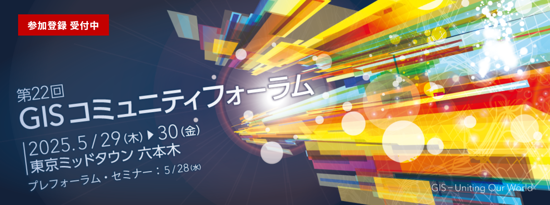 第 22 回 GISコミュニティフォーラムは、ArcGISユーザー会が主催し様々なGIS関連企業が後援GISの総合イベントです。